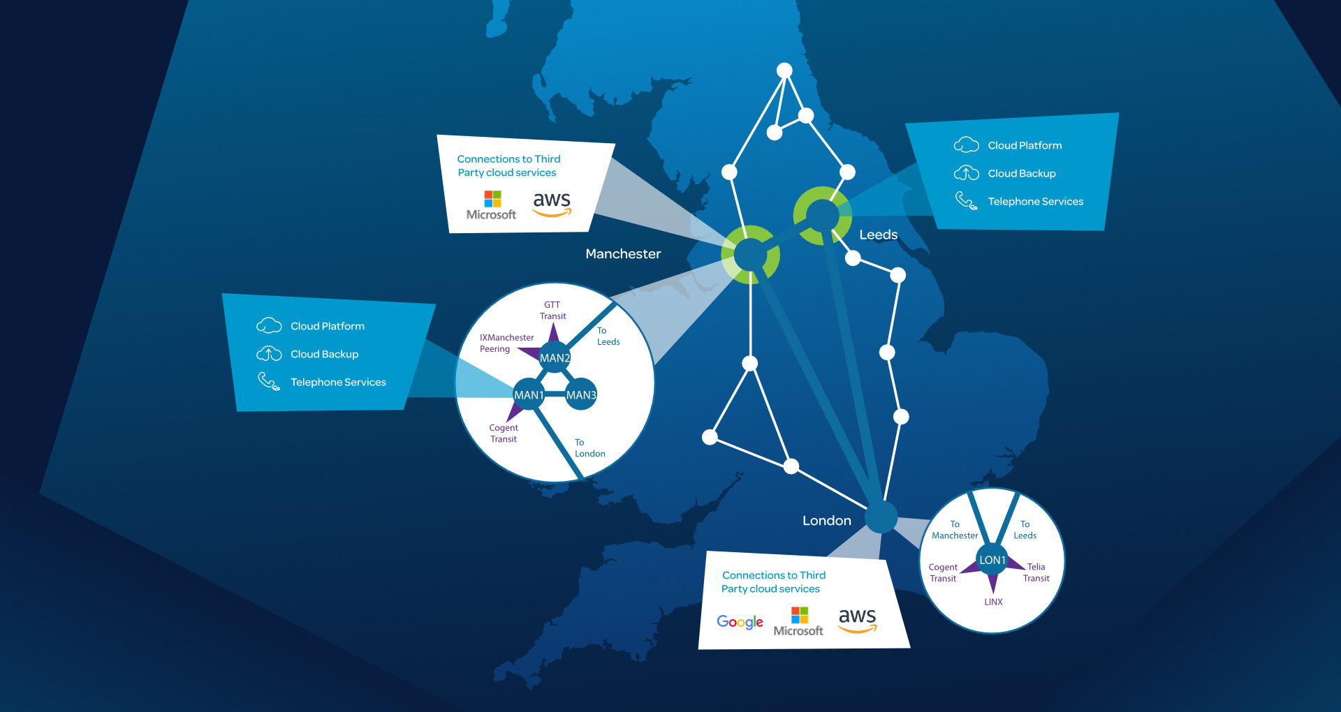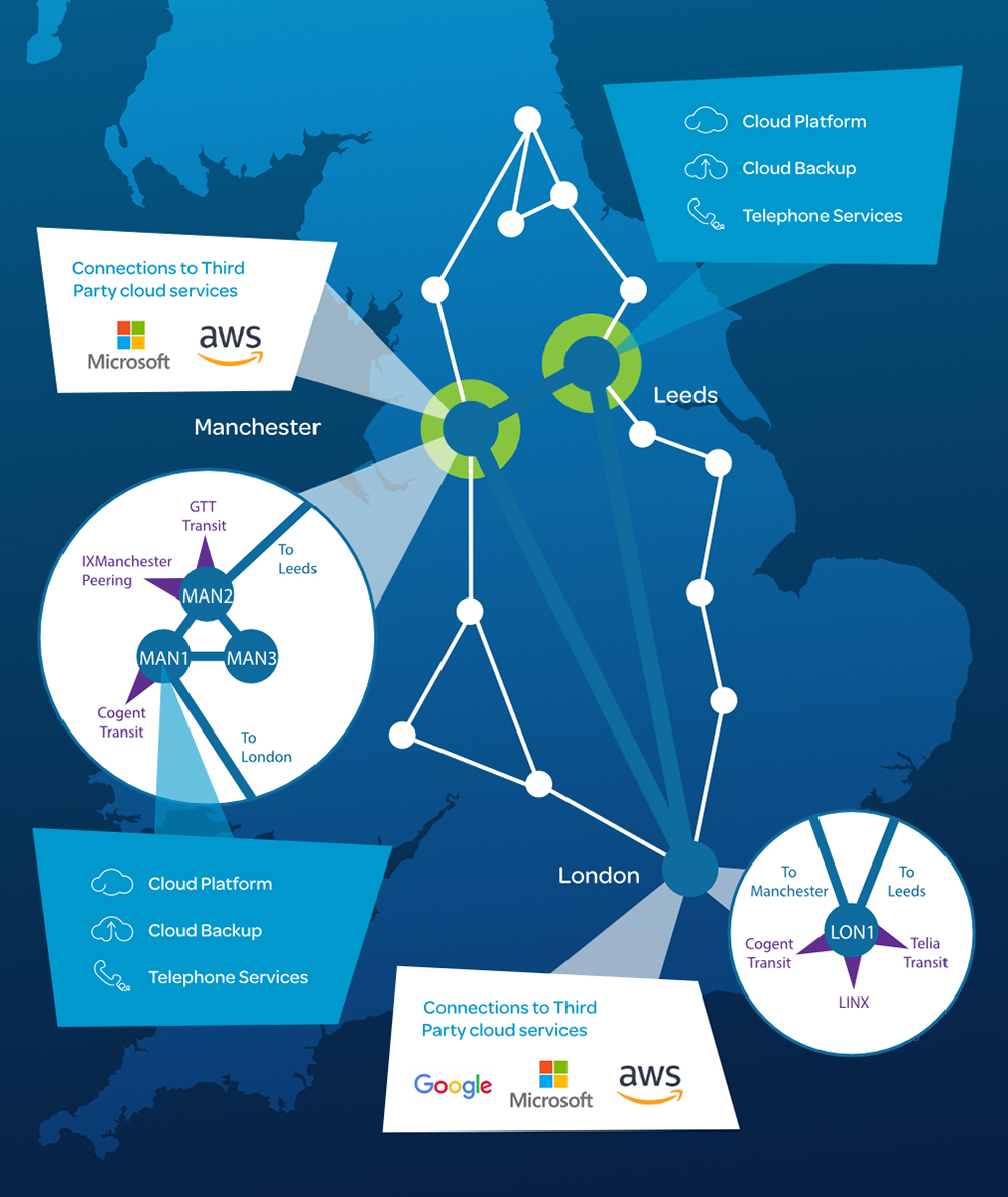 We operate our own independent backbone network (AS15692) with points of presence in London, Manchester, York, Leeds & Newcastle.